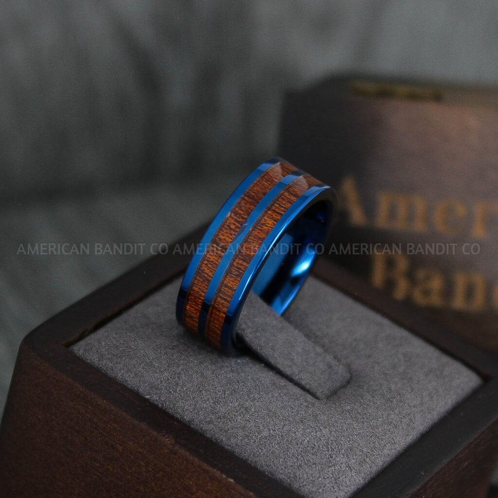 Damascus Steel Ring, Damascus Steel Jewelry, Damascus Steel Wedding Ring, Damascus Steel Wedding Band, Blue Wedding Band, Blue Wedding Ring
