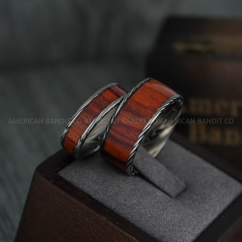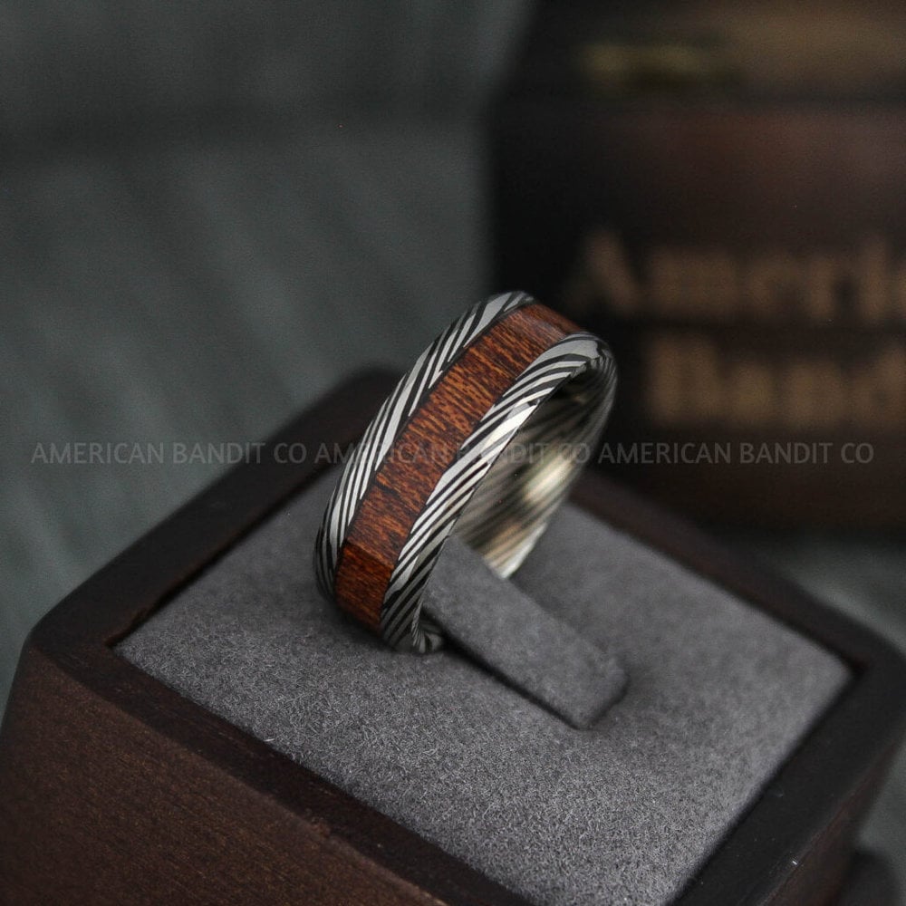 Damascus Steel Ring, Damascus Steel Wedding Band, Damascus Steel Band, Black Wood Ring, Wood Wedding Ring, Wood Wedding Band, Wood Jewelry