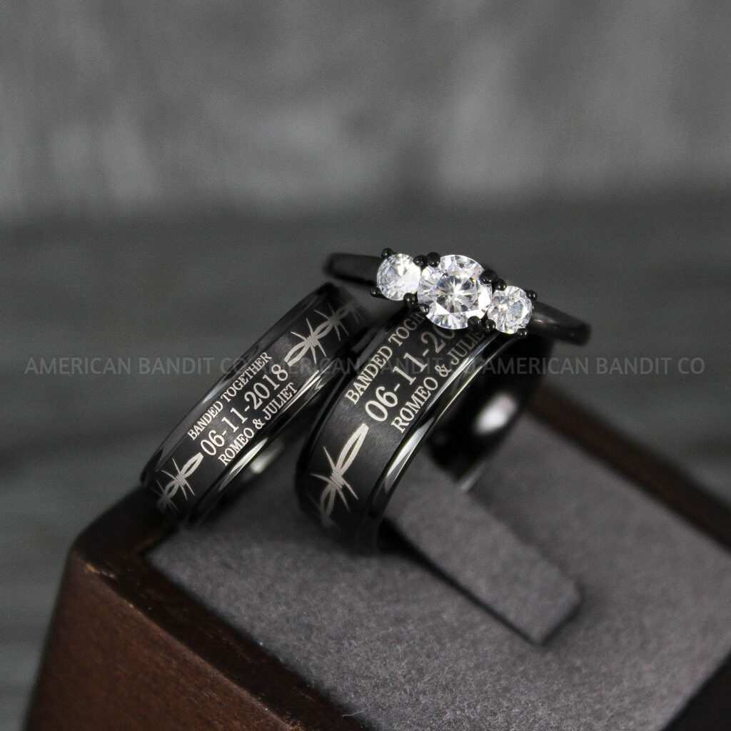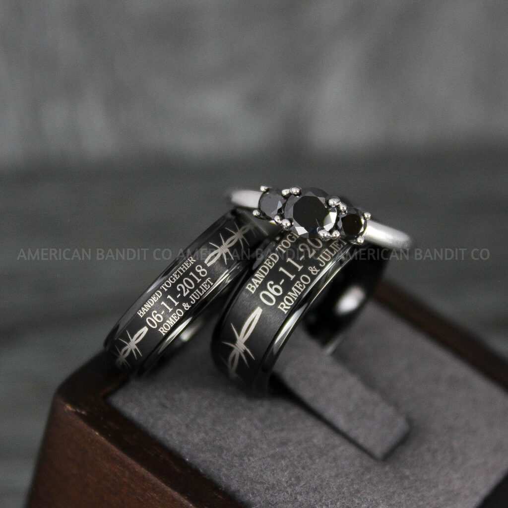 $168.00Always and Forever Rings, Couple Rings, Couple Wedding Bands, Matching Couple Rings, Couple Jewelry, Black Wedding Rings