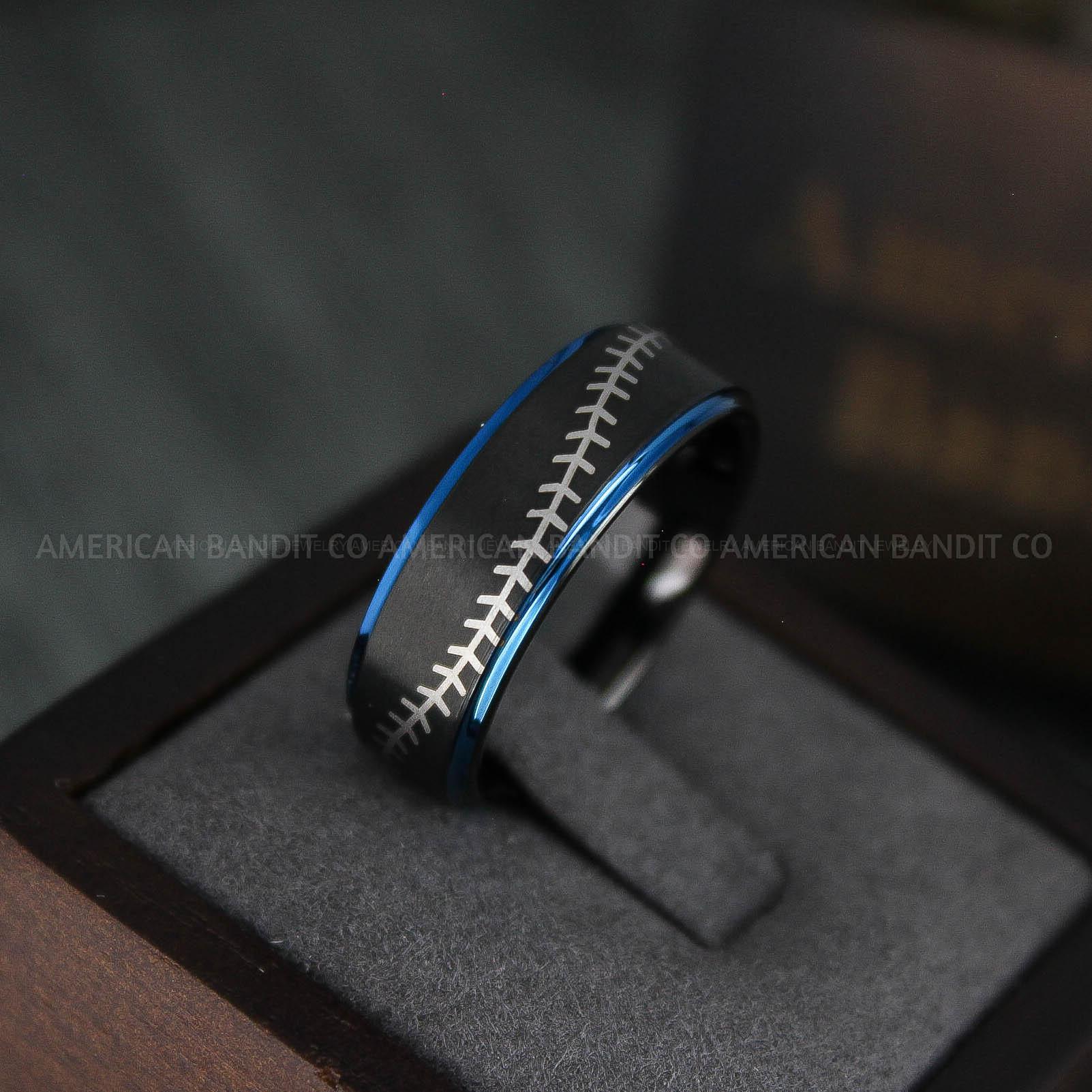 Baseball Ring, Baseball Wedding Ring, Baseball Wedding Band, Black Ring, Black Wedding Band, Black Baseball Wedding Band, Baseball Jewelry