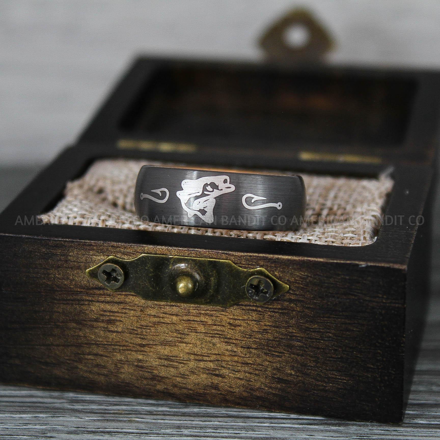 Bass Fish Ring, Bass Jewelry, Fishing Ring, Bass Fish Ring, Hunting Ring, Fish Hooks Ring, Fishing Wedding Band