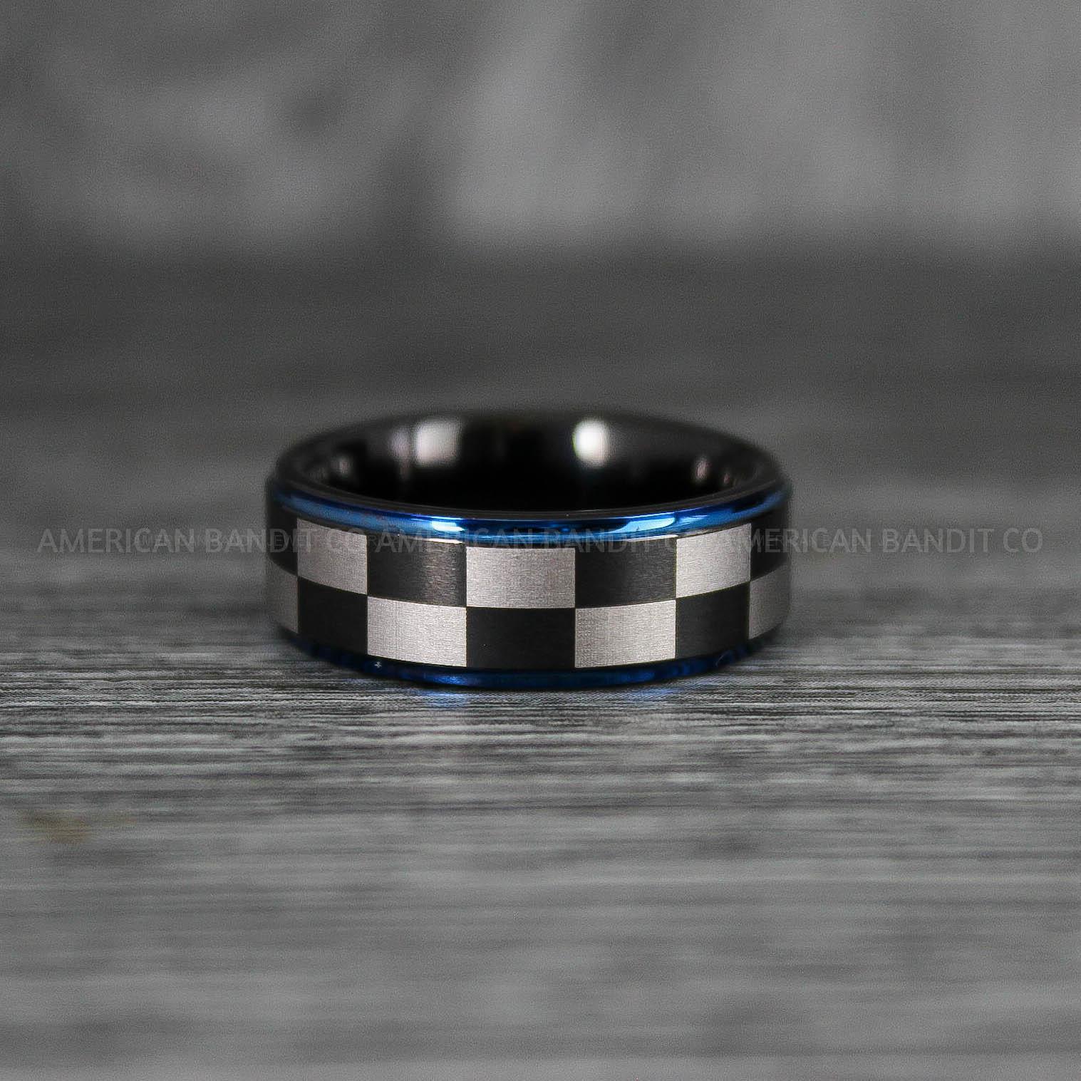Checkered Flag Rings, Motor Sports Jewelry, Auto Racing Rings, Car Racing Rings, Checkered Flag Pattern Wedding Bands