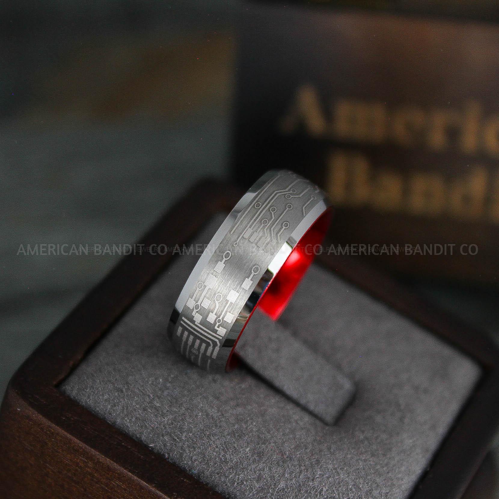 Circuit Board Ring, Circuit Board Wedding Band, Gamer Ring, Gamer Wedding Band, Silver Wedding Band