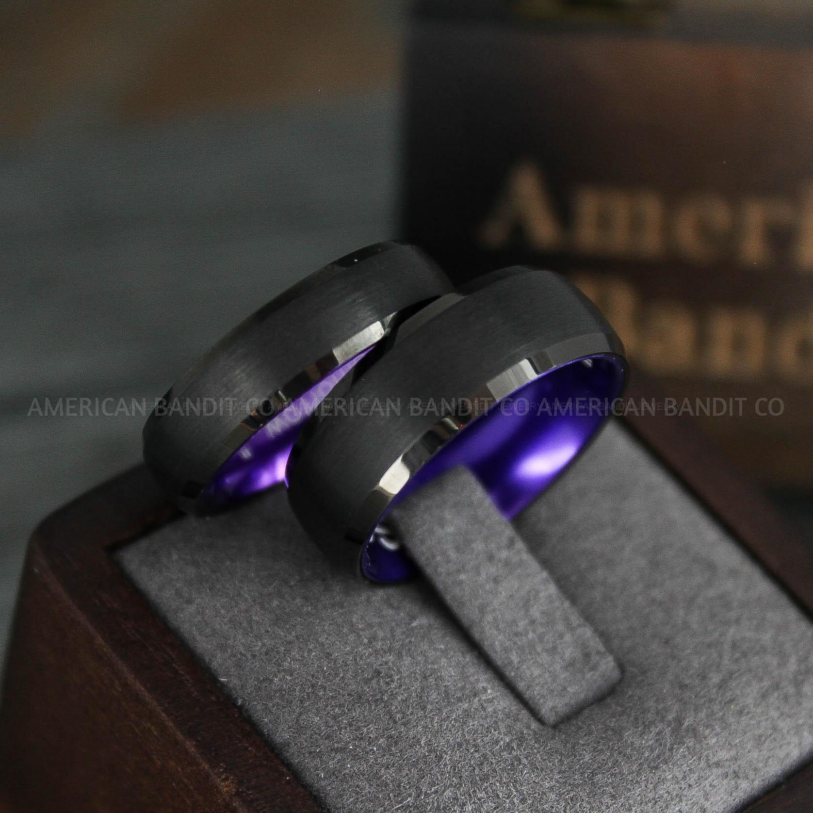 8MM BLACK TUNGSTEN BAND WITH PURPLE INTERIOR