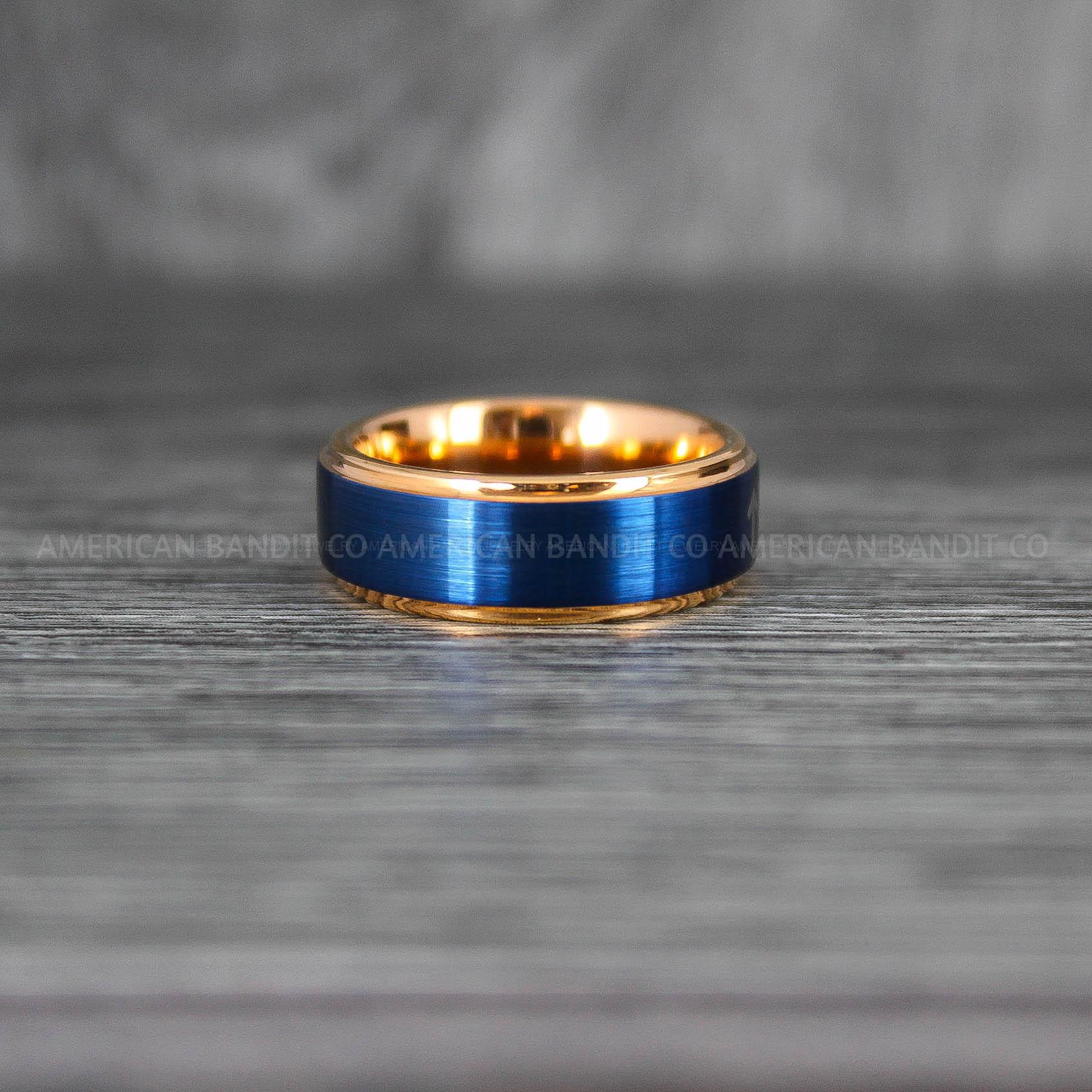 8MM 14K ROSE GOLD TUNGSTEN BAND WITH BLUE EXTERIOR