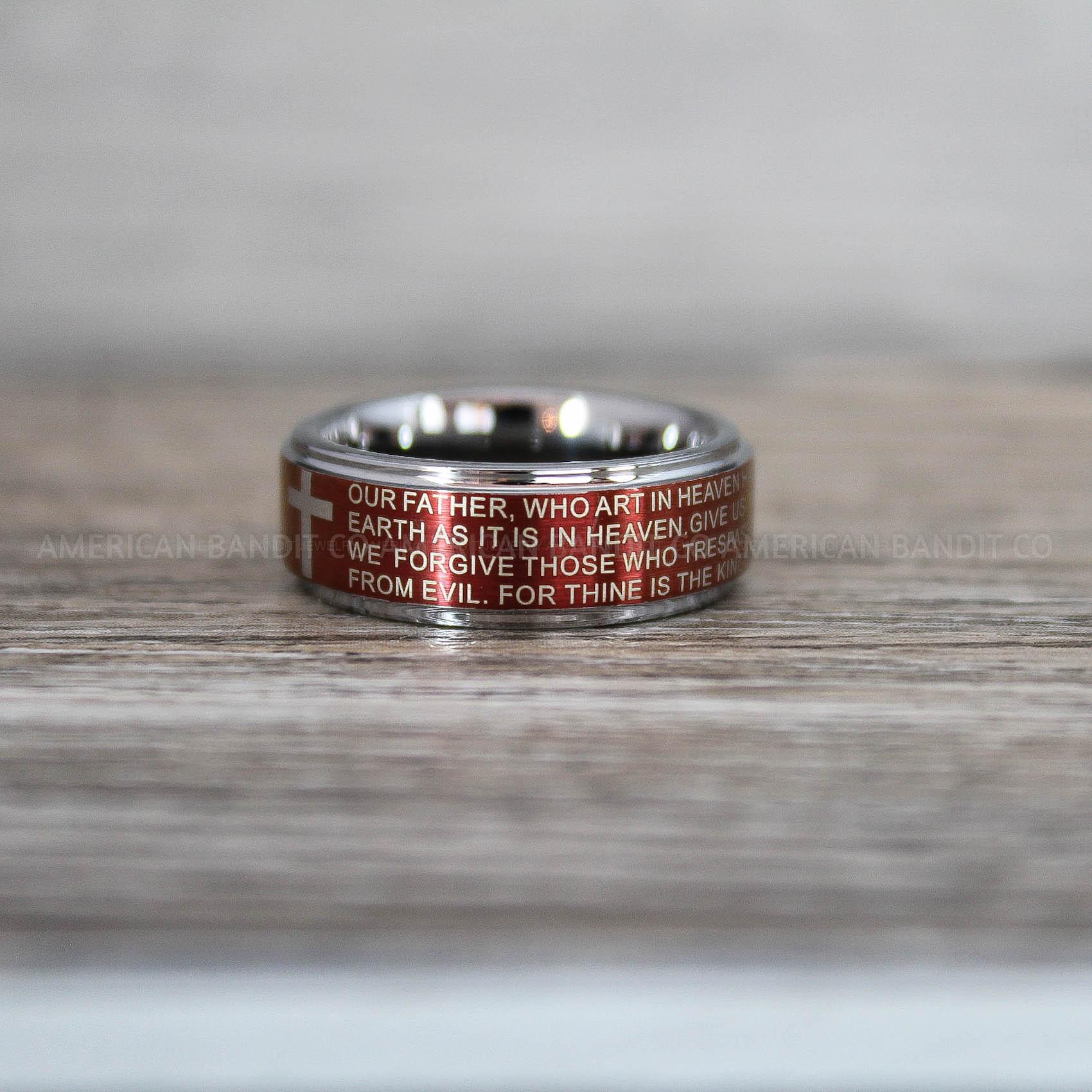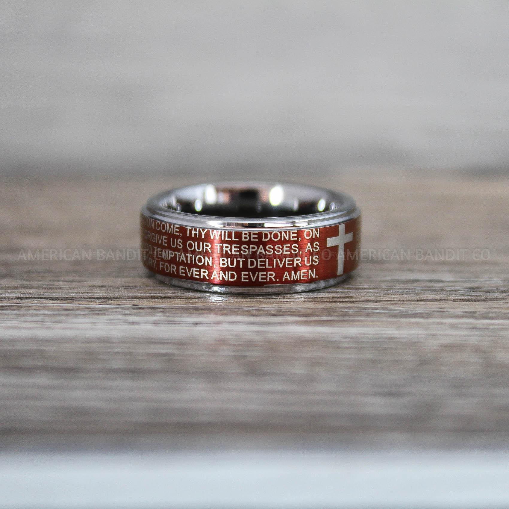 Cross Rings, Religious Rings, Red Wedding Band, Red Wedding Ring, Cross Wedding Band
