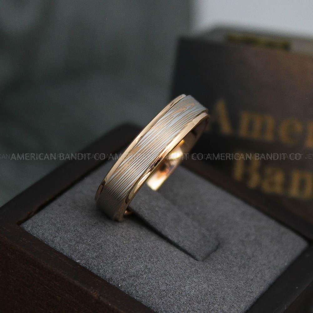 Damascus Steel Ring, Damascus Steel Wedding Ring, Damascus Steel Wedding Band, Rose Gold Wedding Ring, Rose Gold Damascus Steel Wedding Ring