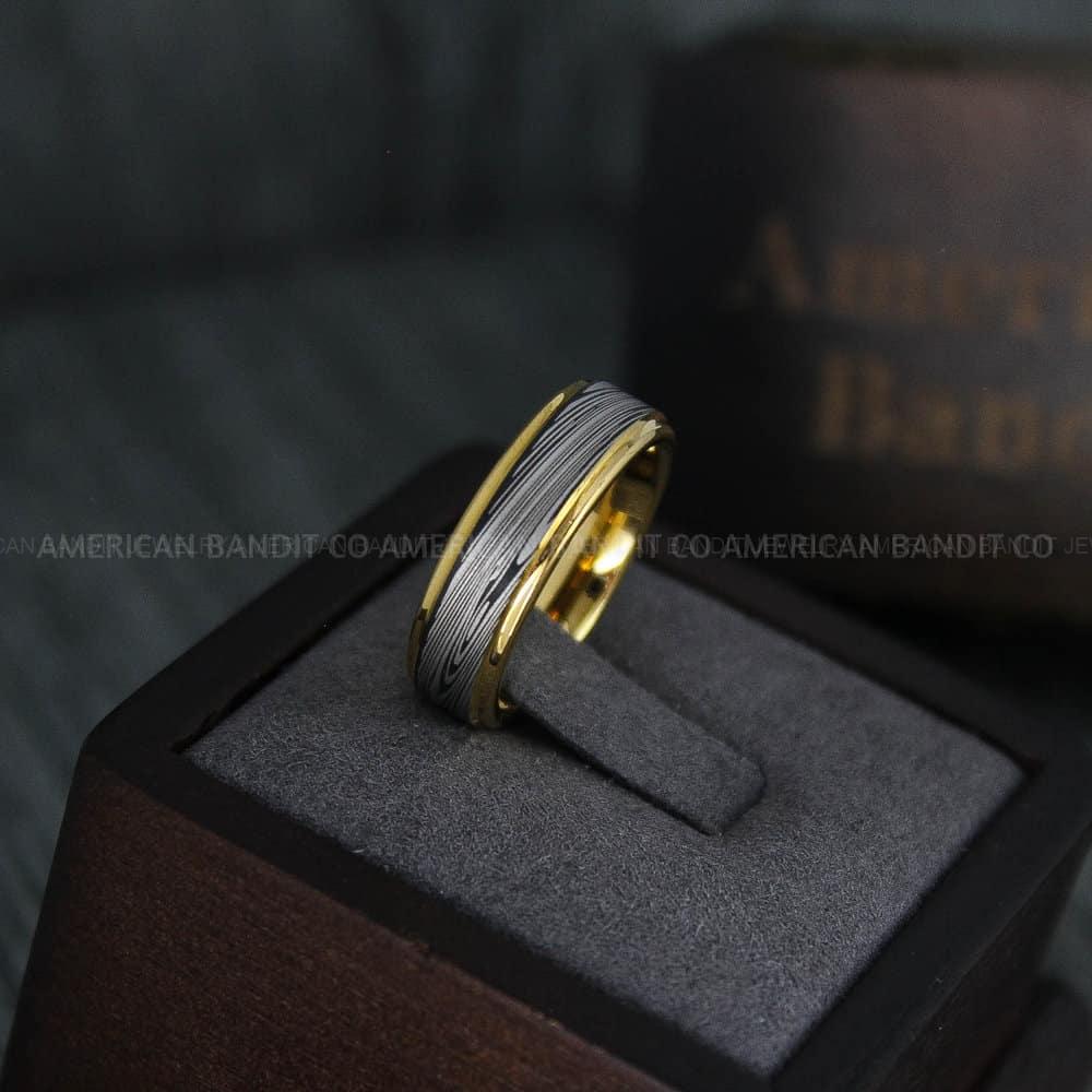Damascus Steel Rings, Damascus Steel Wedding Rings, Damascus Steel Wedding Bands, Yellow Gold Wedding Rings, Yellow Gold Damascus Steel Wedding Rings