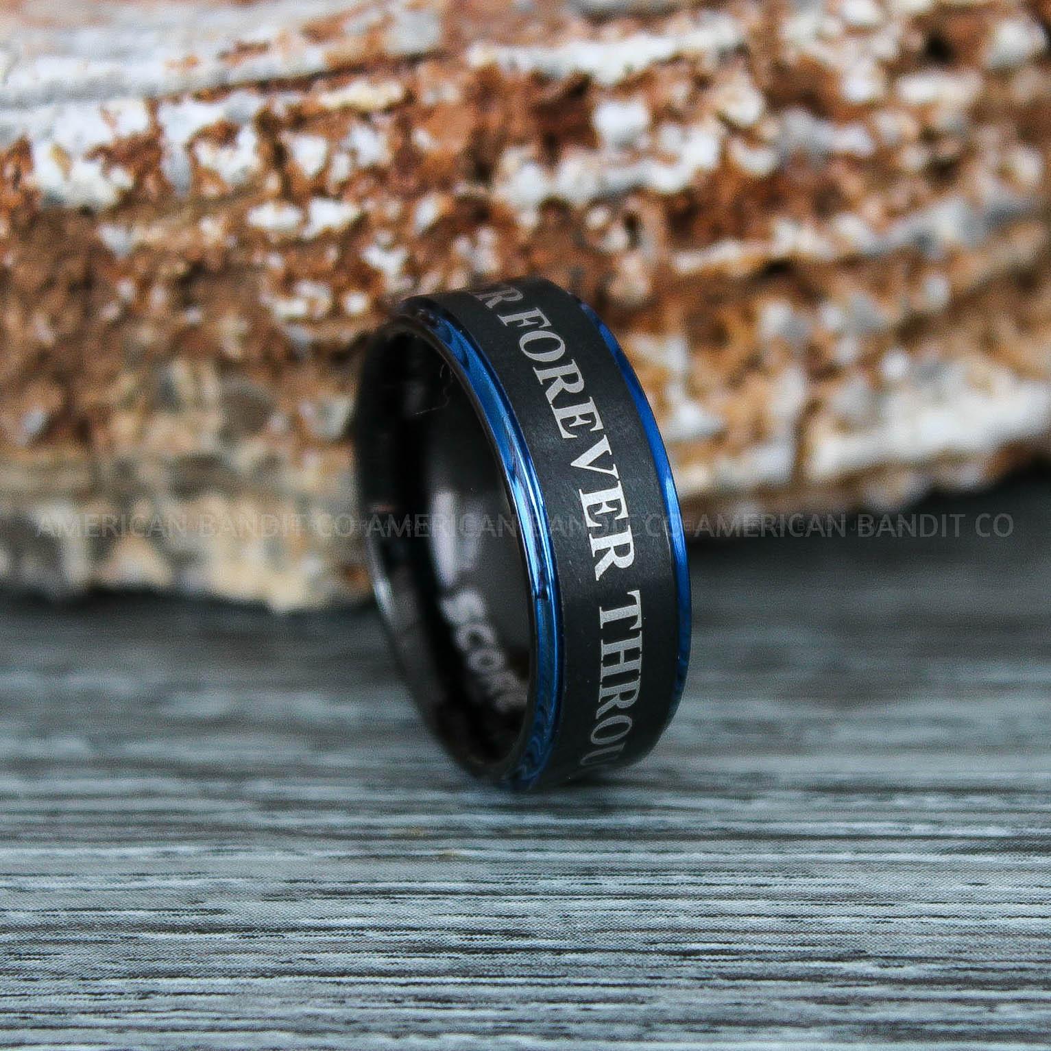8MM BLACK TUNGSTEN BAND WITH BLUE STEP EDGE