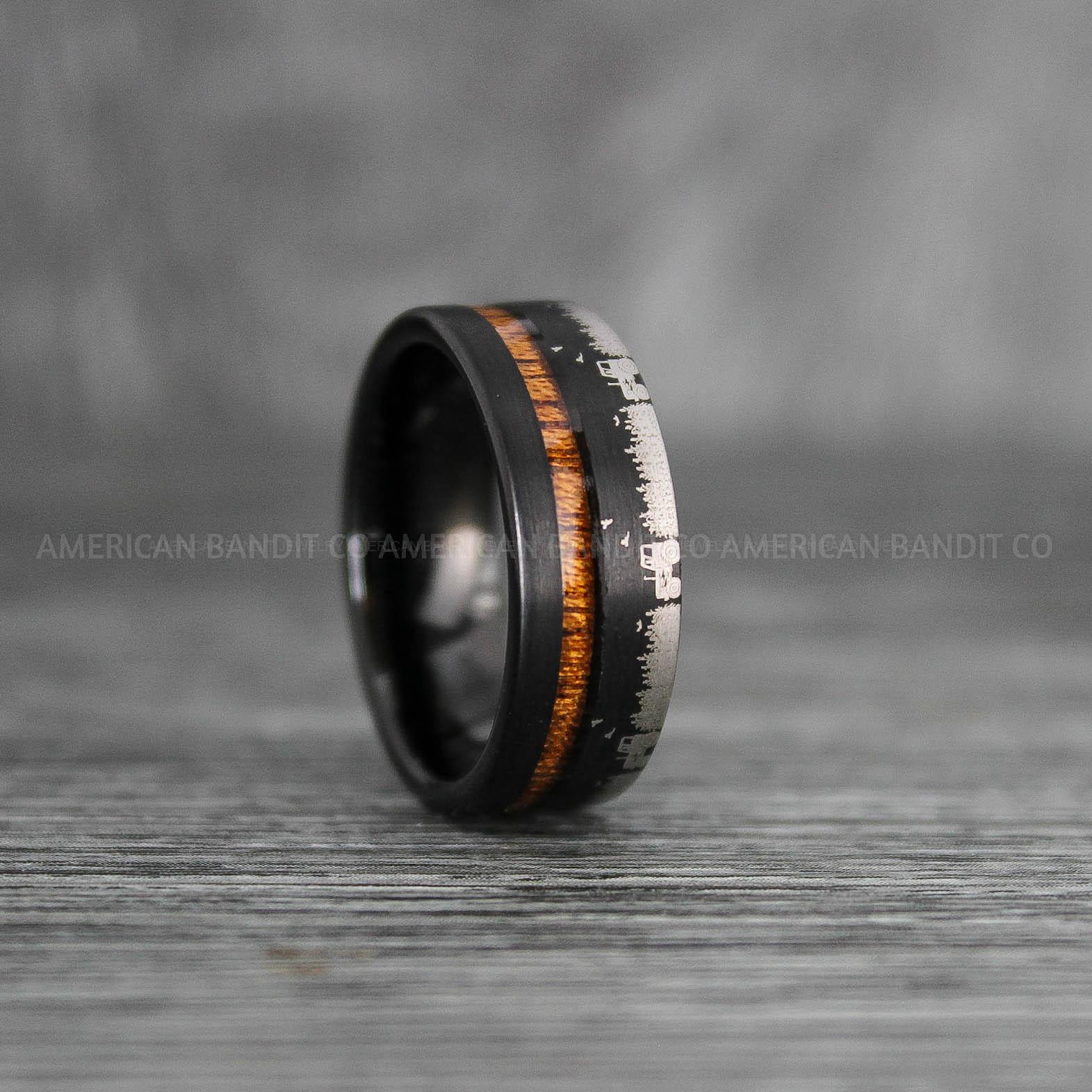 8MM BLACK TUNGSTEN BAND WITH WOOD INLAY