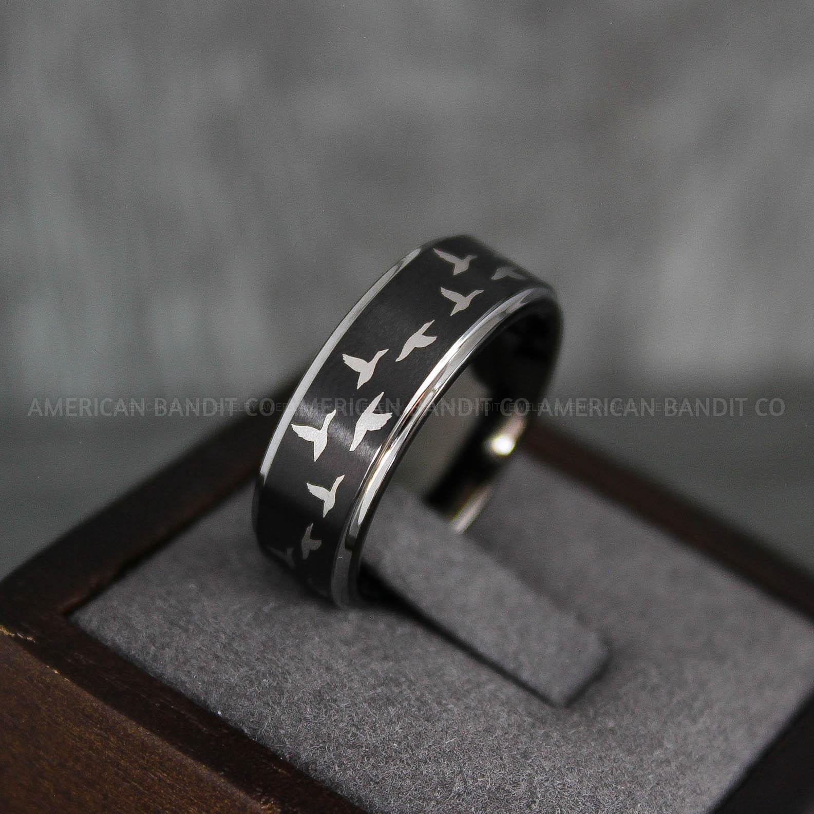 Flying Ducks Ring, Duck Hunting Ring, Hunting Wedding Band, Hunting Wedding Ring, Hunting Jewelry, Duck Hunting Wedding Band, Duck Jewelry