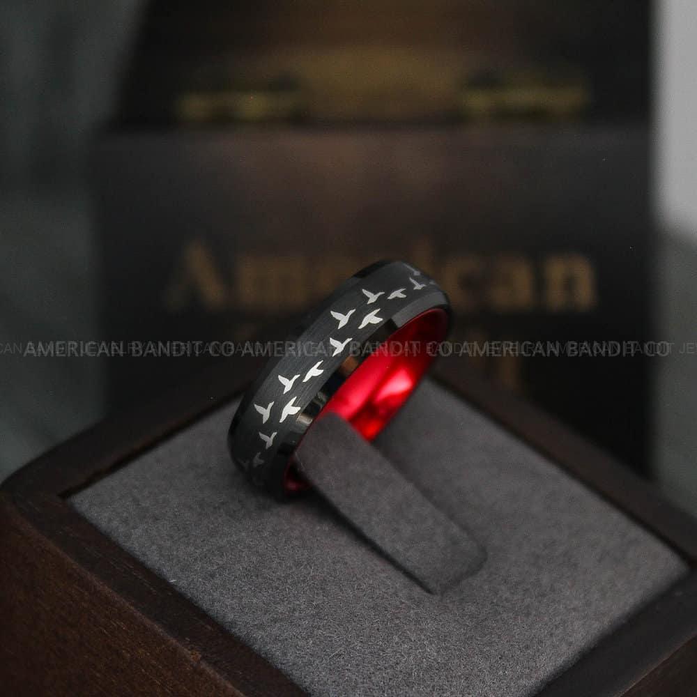 Flying Geese Ring, Geese Wedding Ring, Hunting Ring, Good Hunting Ring, Hunting Jewelry, Duck Band, Duck Hunting Ring, Duck Hunting Band