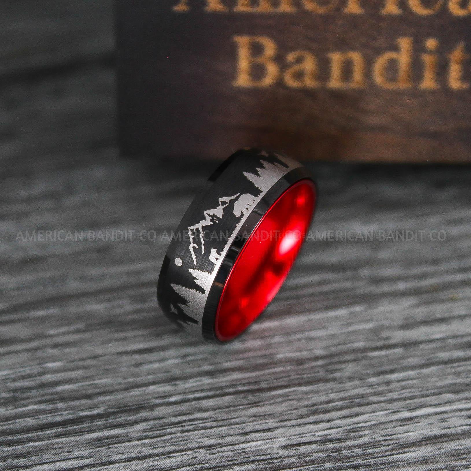 8MM BLACK TUNGSTEN BAND WITH RED INTERIOR