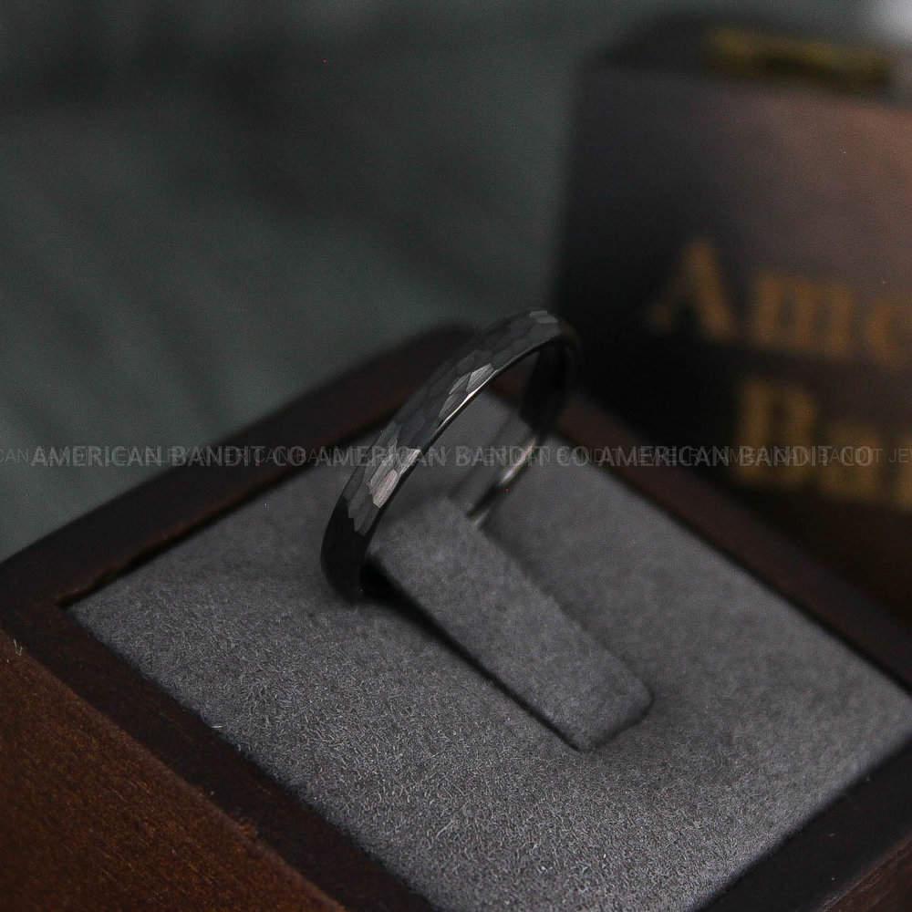 3MM BLACK TUNGSTEN BAND HAMMERED FINISH