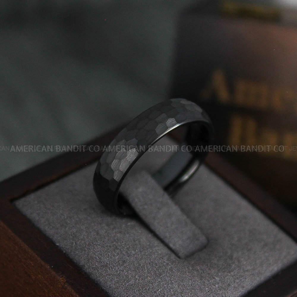 6MM BLACK TUNGSTEN BAND HAMMERED FINISH