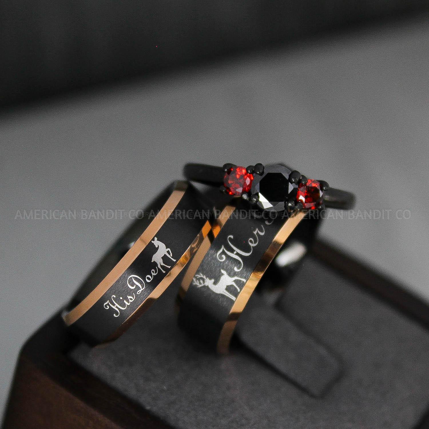 Her Buck Ring, His Doe Ring, Her Buck and His Doe Ring Set, Couple Rings, Rose Gold Wedding Bands, Couple Jewelry, Couple Wedding Bands