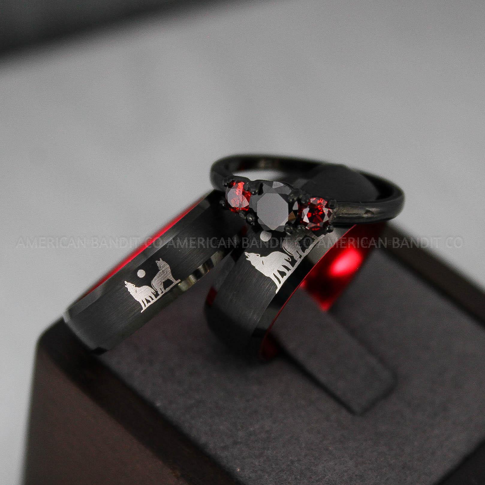 Howling Wolves Ring, Wolf Ring, Couple Wedding Rings, Couple Rings, Wolves Ring, Wolf Howl Ring, Black Wedding Bands, Matching Wedding Rings