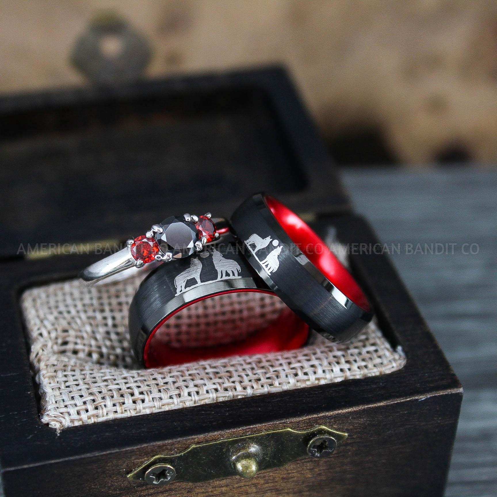 Howling Wolves Ring, Wolf Ring, Couple Wedding Rings, Couple Rings, Wolves Ring, Wolf Howl Ring, Black Wedding Bands, Matching Wedding Rings