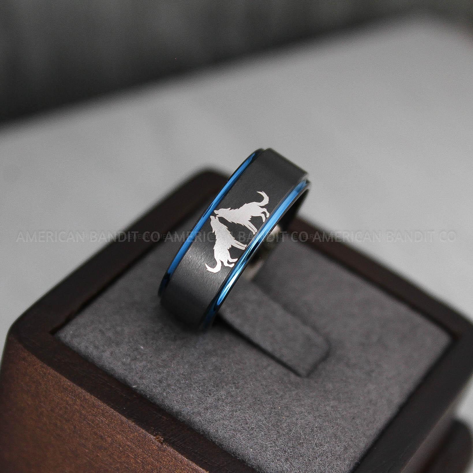 Howling Wolves Ring, Wolf Ring, Couple Wedding Rings, Couple Rings, Wolves Ring, Wolf Howl Ring, Black Wedding Bands, Matching Wedding Rings