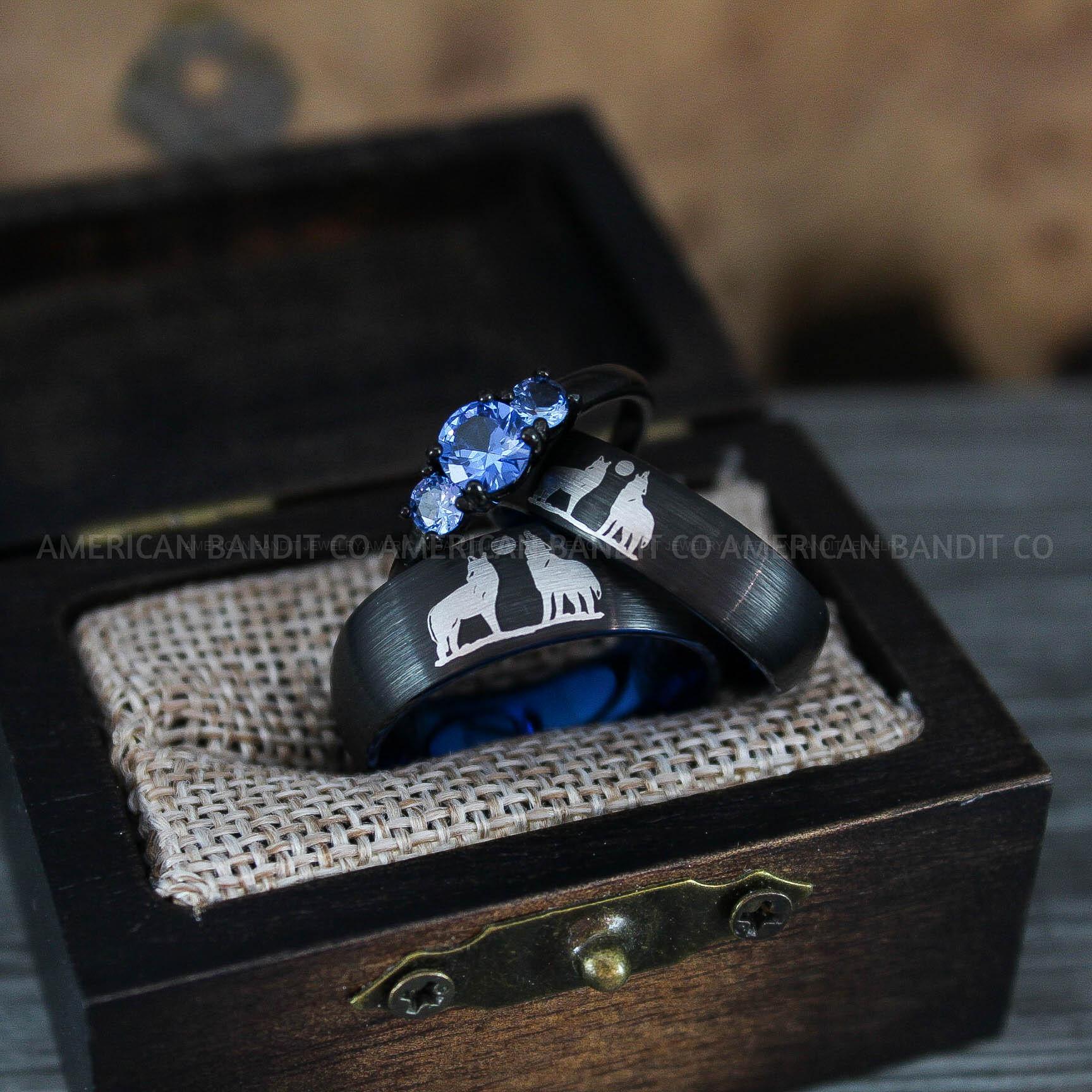 Howling Wolves Ring, Wolf Ring, Couple Wedding Rings, Couple Rings, Wolves Ring, Wolf Howl Ring, Black Wedding Bands, Matching Wedding Rings
