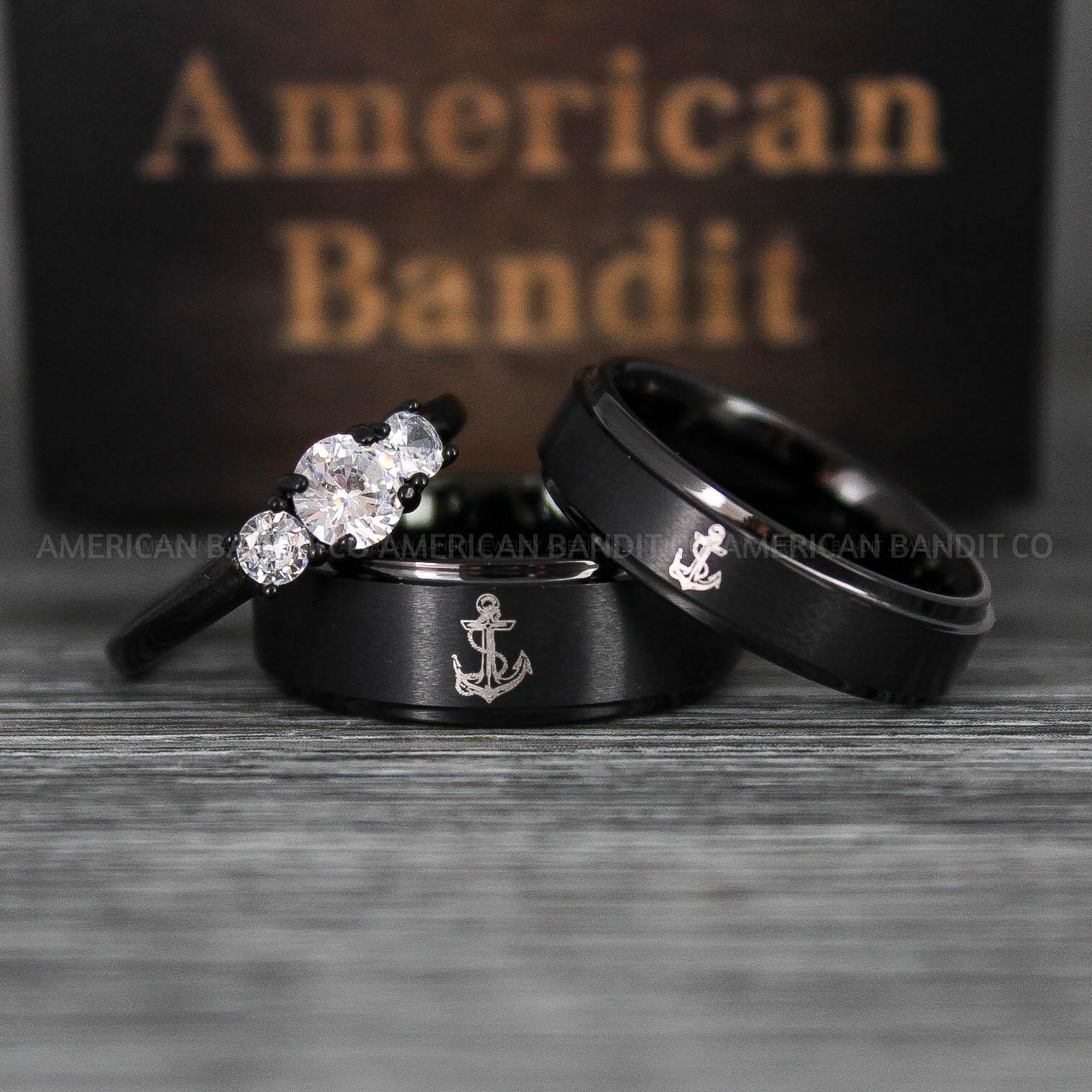 Nautical Ring, Anchor Ring, Black Anchor Rings, Black Wedding Rings, Black Nautical Rings, Black Wedding Bands, Black Anchor Tungsten Rings