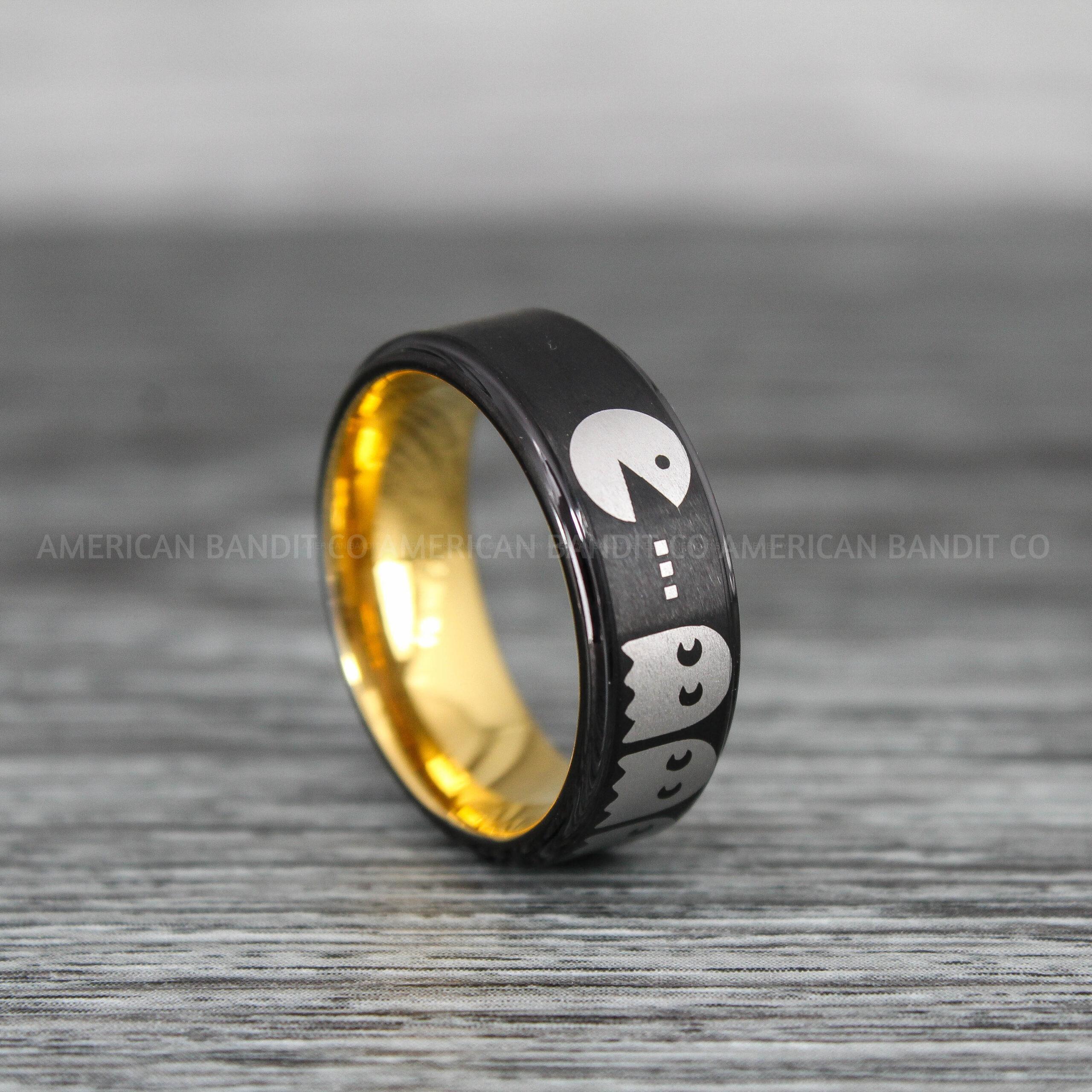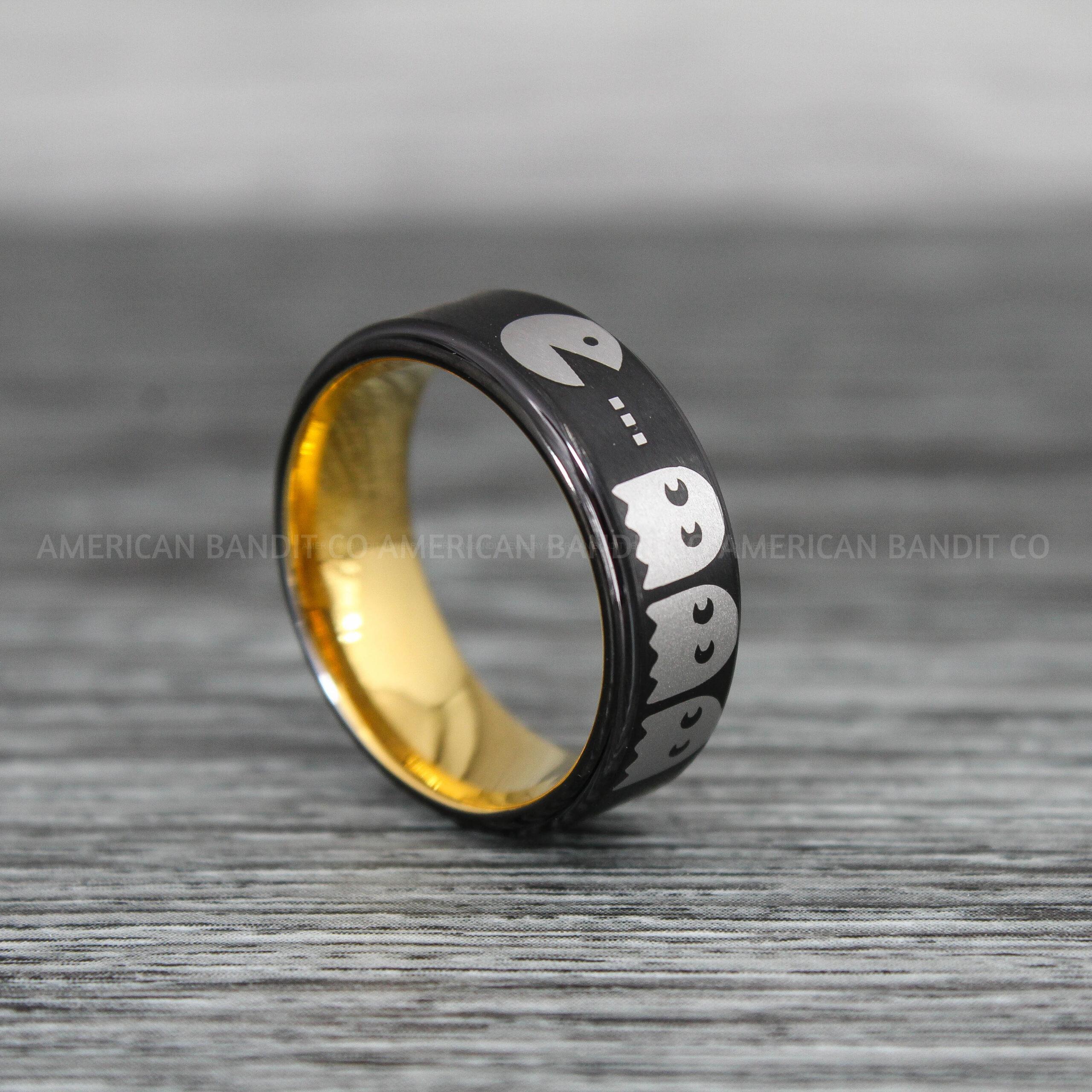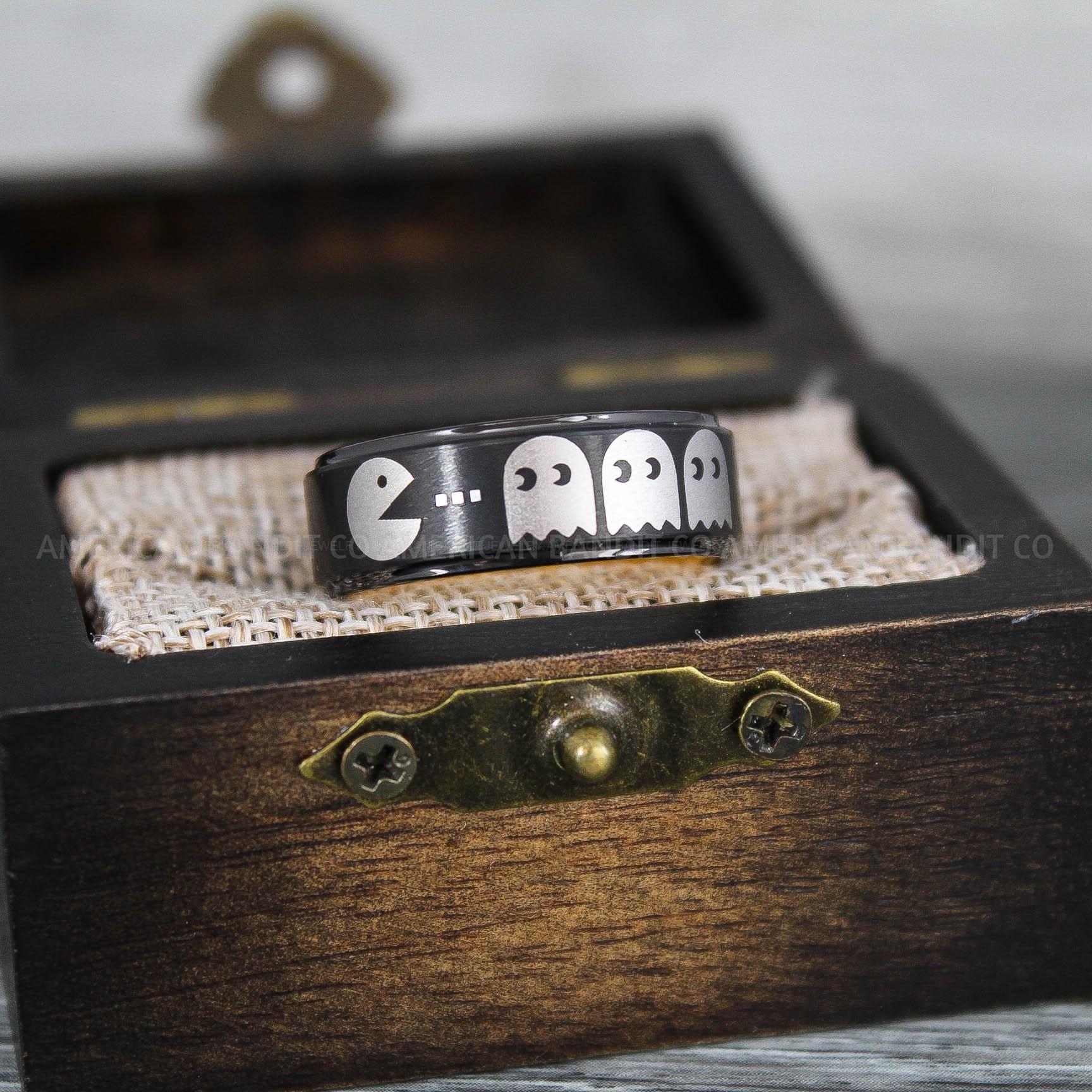 Pacman Ring, Pacman Jewelry, Retro Gamer Ring, Gamer Ring, Pac Man Jewelry, Sega Ring, Nintendo Ring, Black Tungsten Ring, Black Wedding Bands