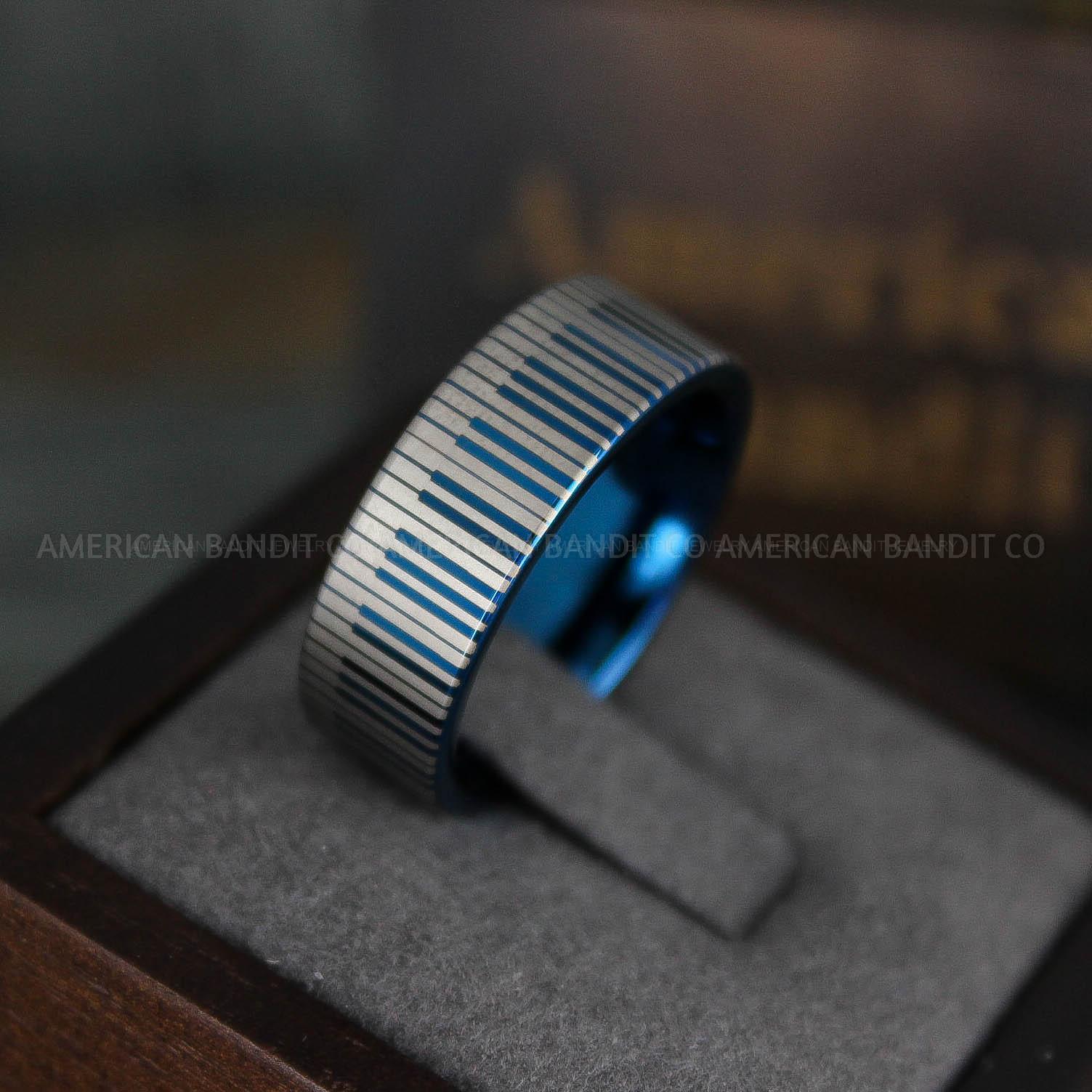 8MM BLUE TUNGSTEN BAND WITH FLAT EDGE