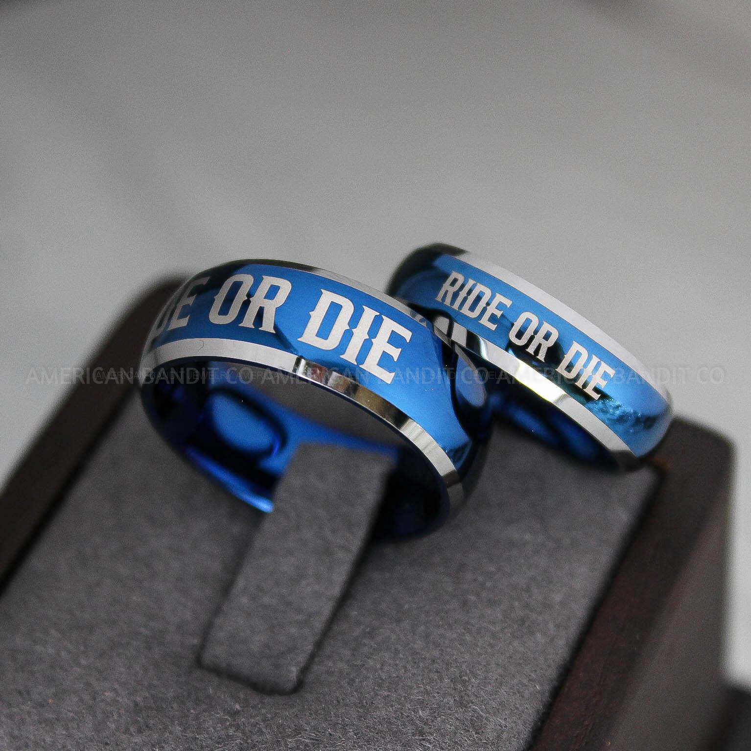 Ride or Die Rings, Ride or Die, Ride or Die Wedding Rings, Ride or Die Wedding Bands, Blue Wedding Rings, Blue Wedding Bands, Biker Rings