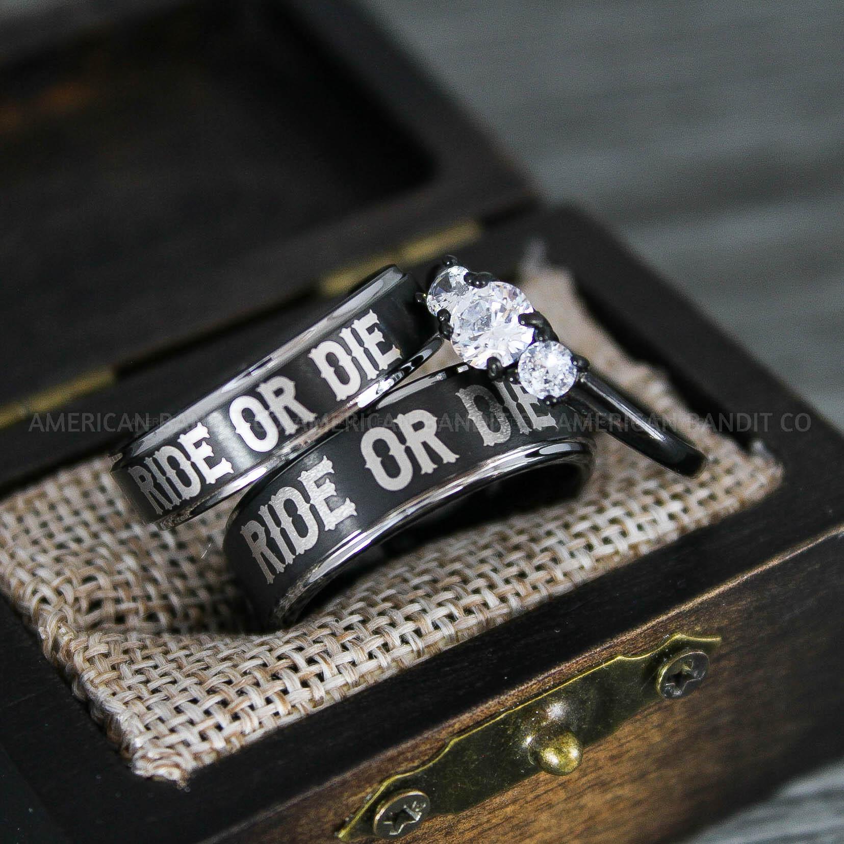 Ride or Die Rings, Ride or Die, Ride or Die Wedding Rings, Ride or Die Wedding Bands, Black Wedding Rings, Black Wedding Bands, Biker Rings