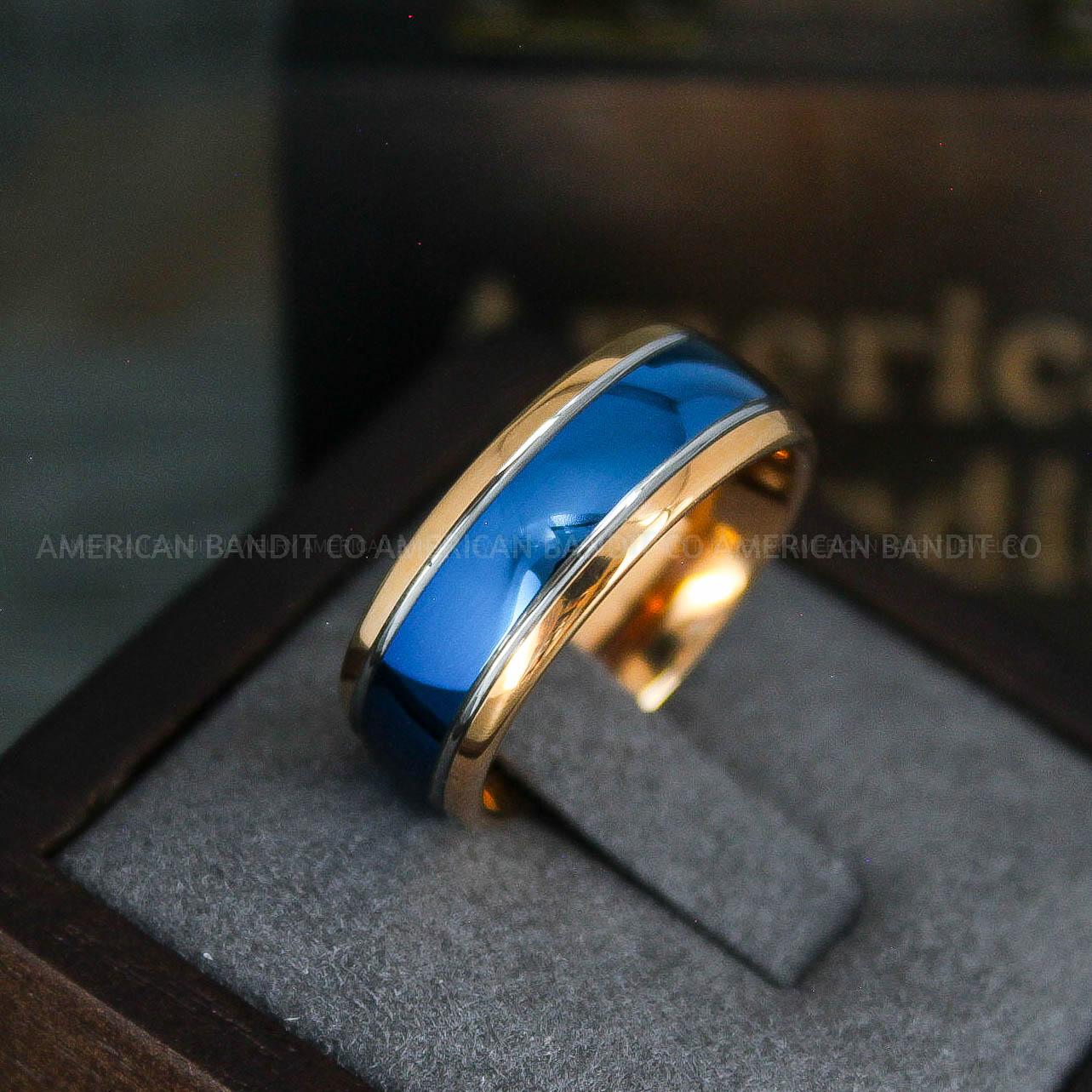 8MM 14K ROSE GOLD TUNGSTEN BAND WITH BLUE CENTER