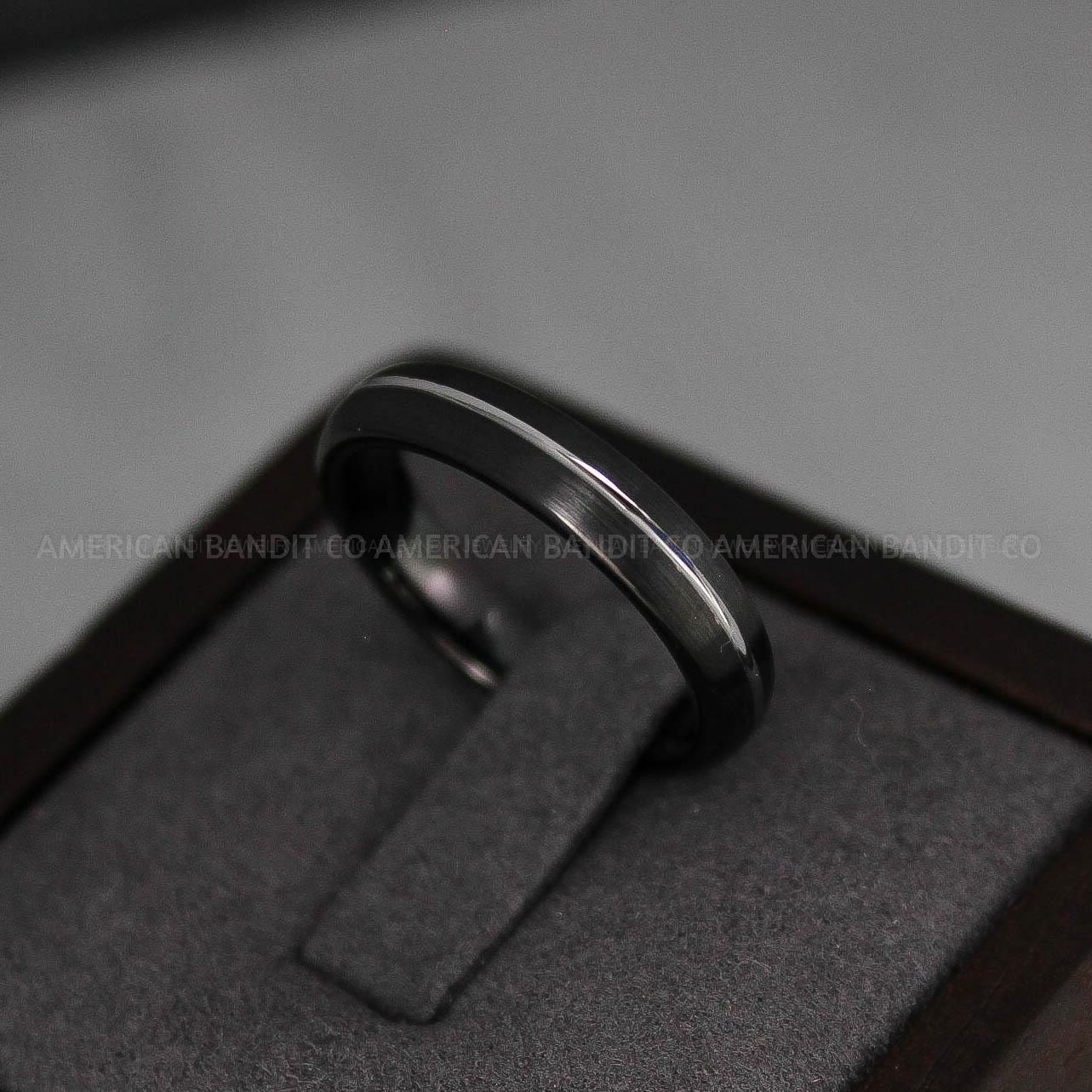 4MM BLACK TUNGSTEN BAND WITH SILVER CENTER GROOVE