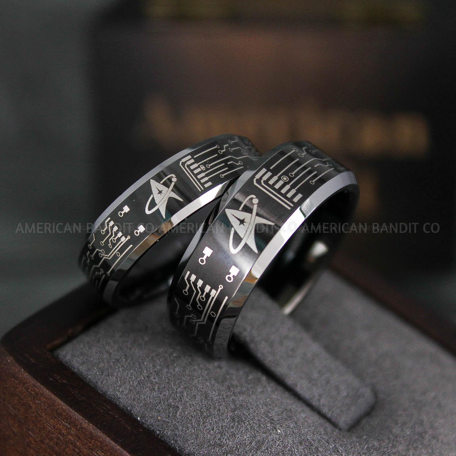 Star Trek Rings, Star Trek Wedding Bands, Black Star Trek Wedding Rings, Star Trek Wedding Rings, Star Trek Jewelry