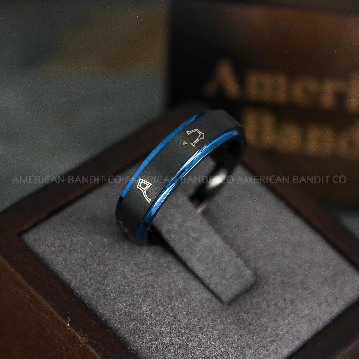 8MM BLACK TUNGSTEN BAND WITH BLUE STEP EDGE