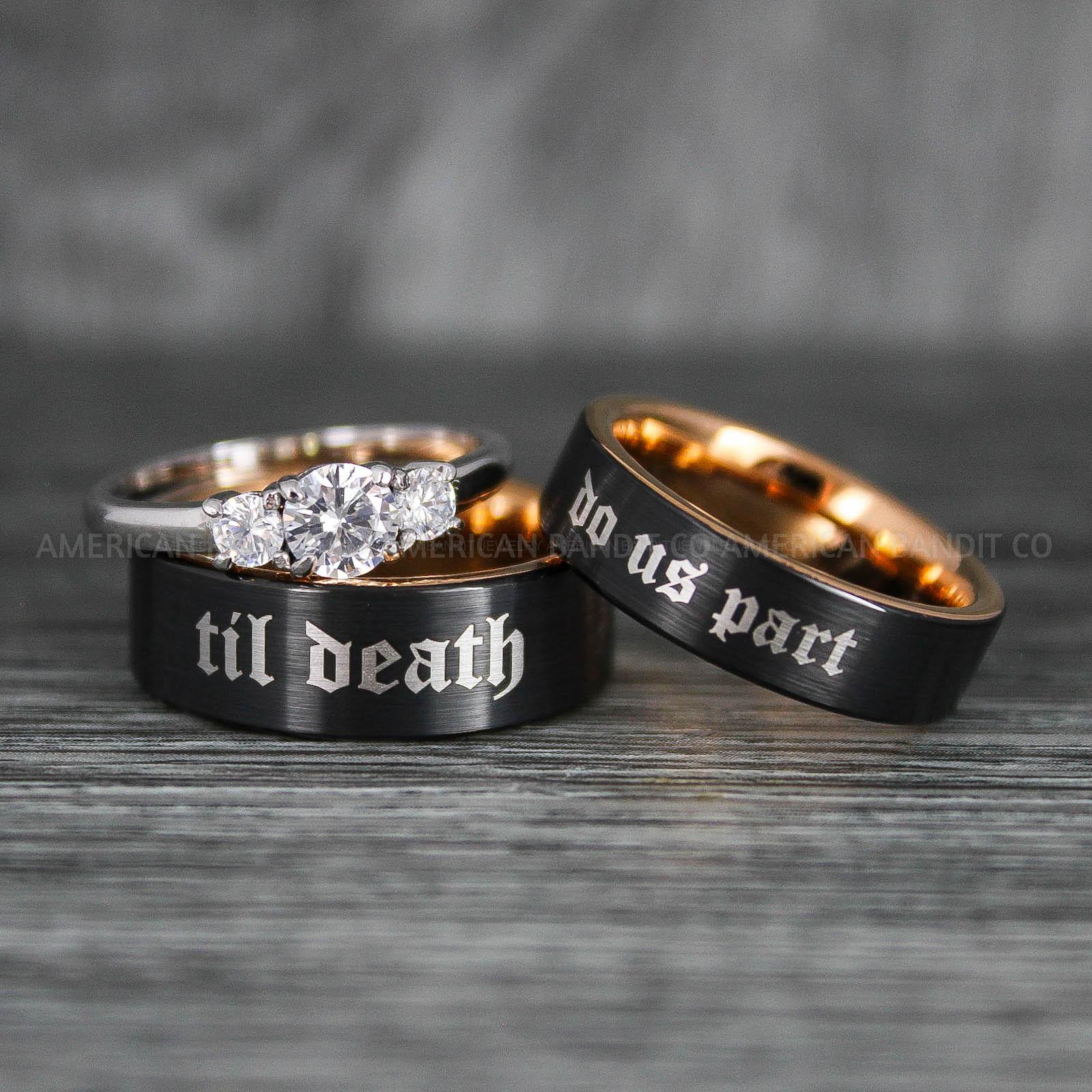 Til Death Do Us Part Rings, Til Death Do Us Part Wedding Rings, Black Wedding Bands
