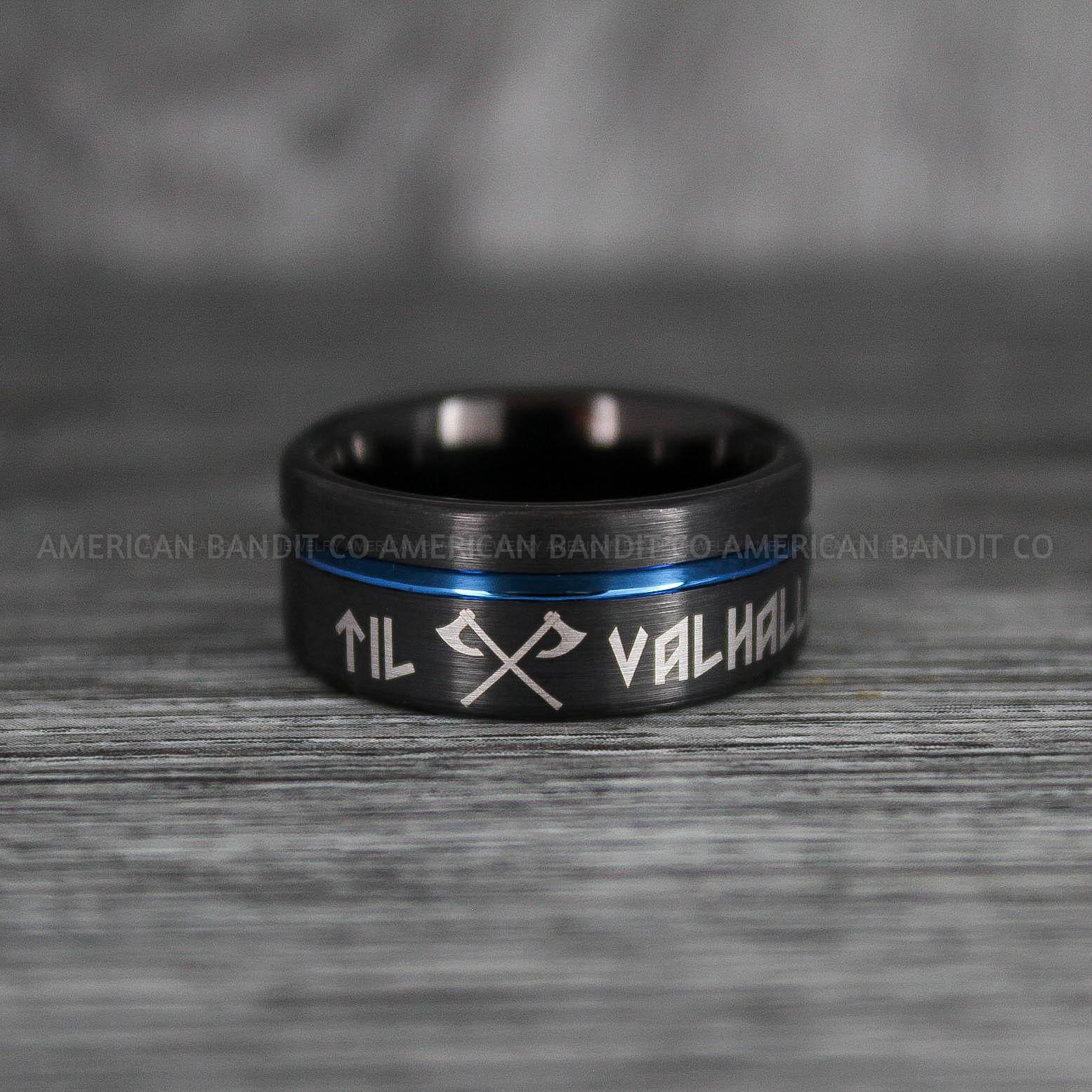 Til Valhalla Rings, Viking Rings, Runes Rings, Vegvísir Ring, Nordic Rings, Norsemen Rings, Nordic Runes Rings, Black Tungsten Bands