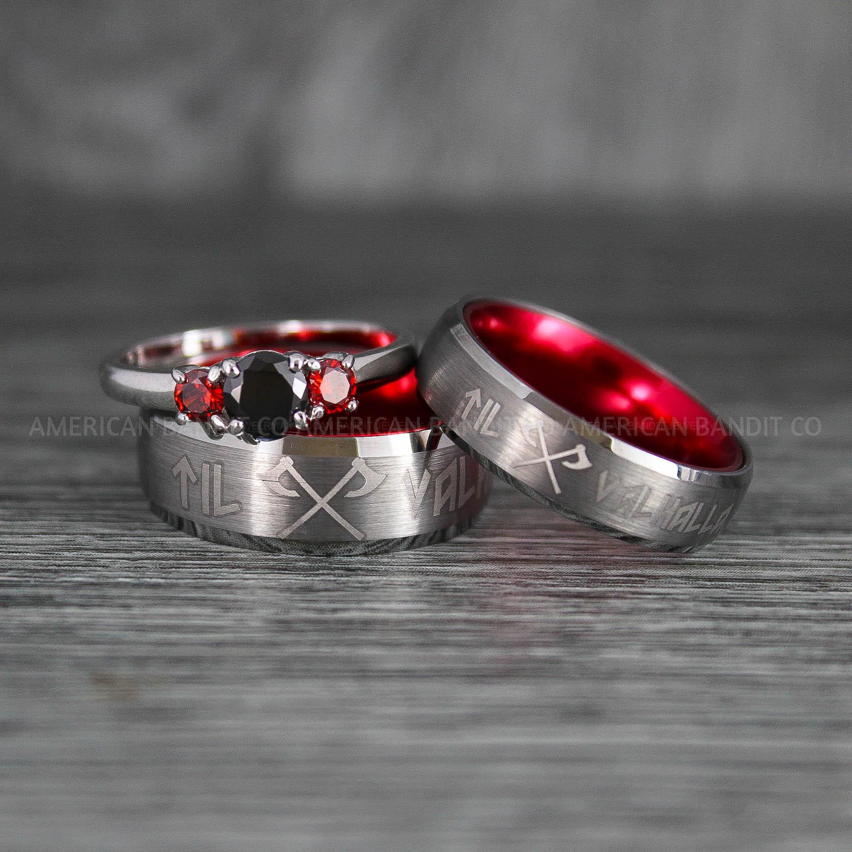 Til Valhalla Rings, Viking Rings, Runes Rings, Vegvísir Ring, Nordic Rings, Norsemen Rings, Nordic Runes Rings, Silver Tungsten Bands