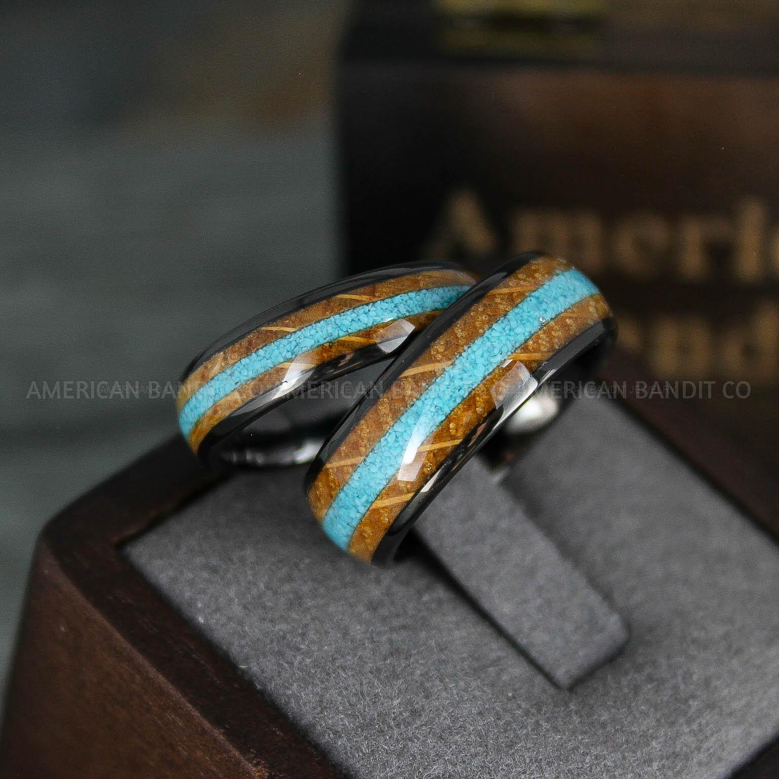 Turquoise Rings, Whiskey Barrel Wood Rings, Turquoise Wedding Bands, Galaxy Rings, Galaxy Wedding Bands, Crushed Turquoise Wedding Rings