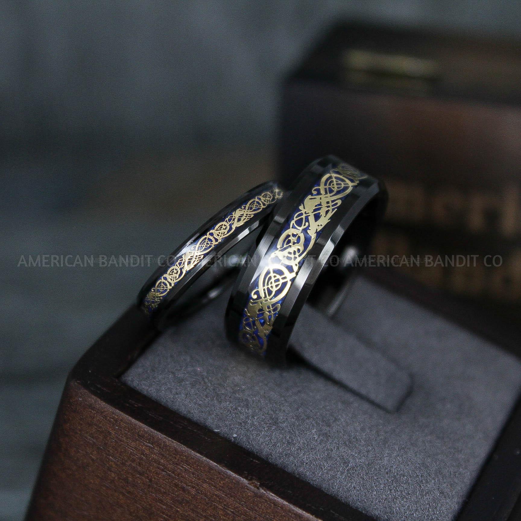 Vikings Rings, Dragon Rings, Dragon Scroll Rings, Vikings Wedding Bands, Black Wedding Bands