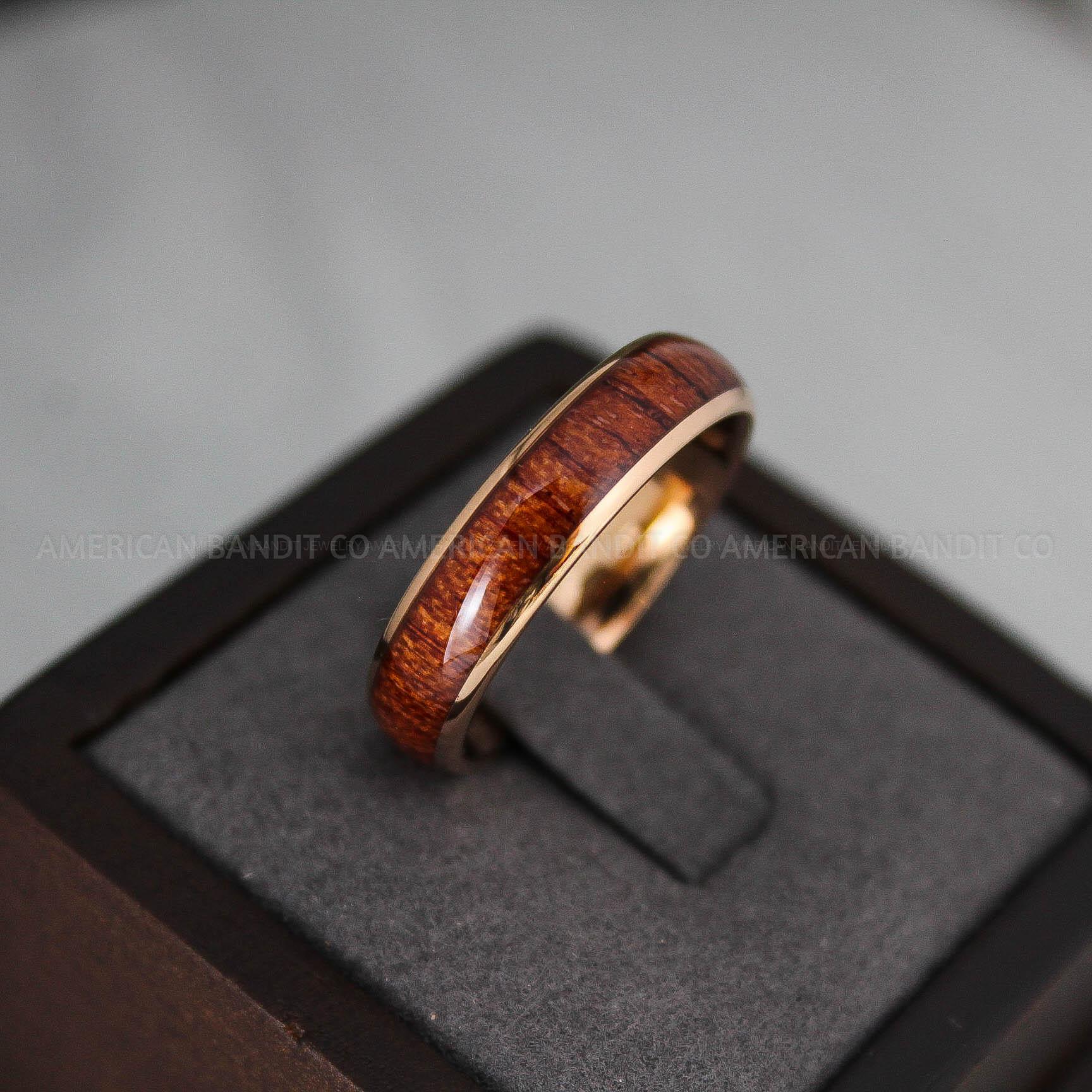 Wood Ring, Wood Wedding Ring, Wood Wedding Band, Rose Gold Wedding Ring, Rose Gold Wedding Band