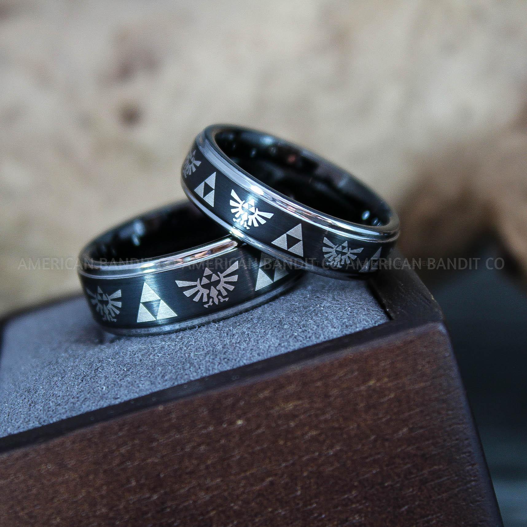 Zelda Rings, Zelda Wedding Rings, Gamer Rings, Gamer Jewelry, Zelda Wedding Bands, Gamer Wedding Rings, Black Wedding Rings
