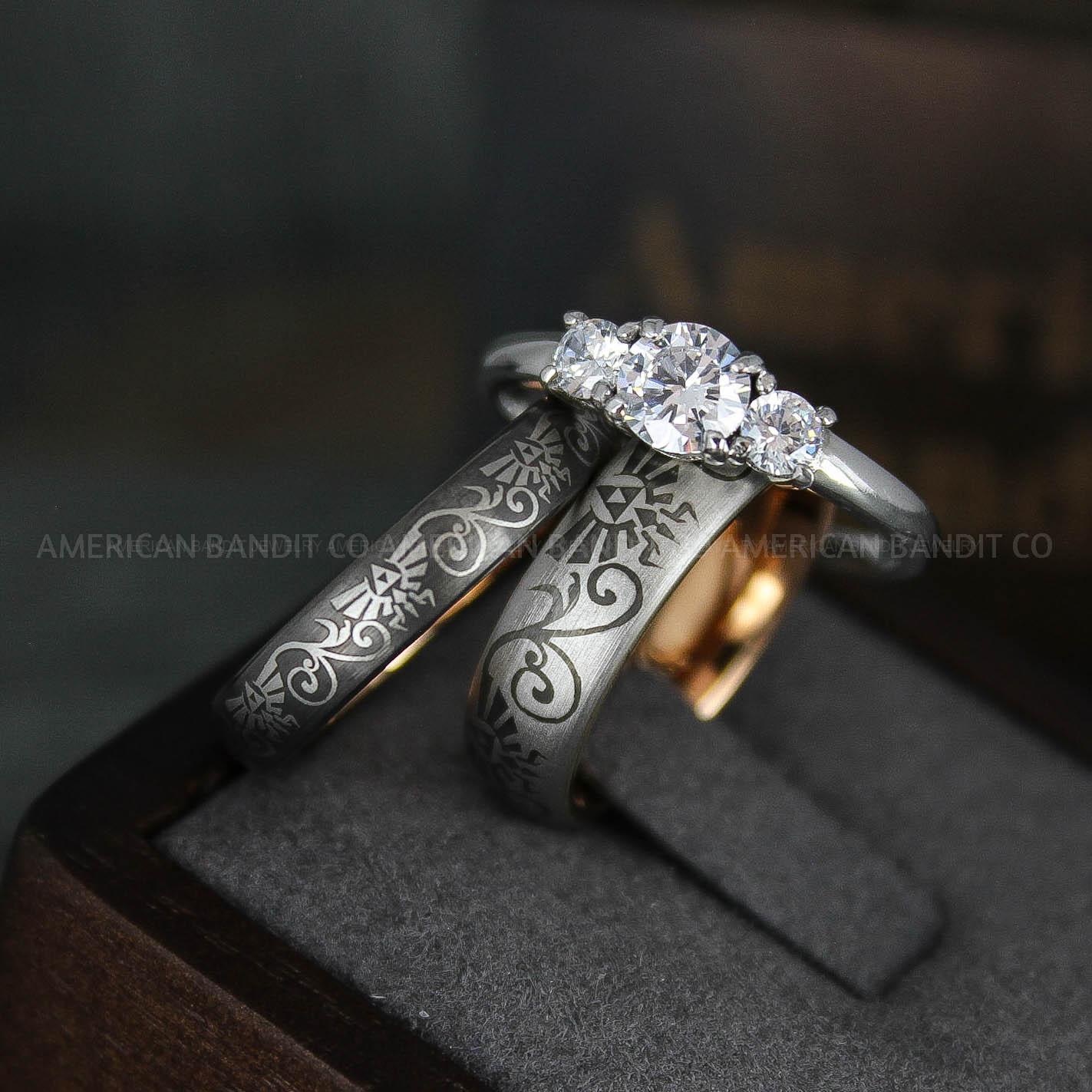 Zelda Rings, Zelda Wedding Rings, Gamer Rings, Gamer Jewelry, Zelda Wedding Bands, Gamer Wedding Rings, Gunmetal Wedding Rings